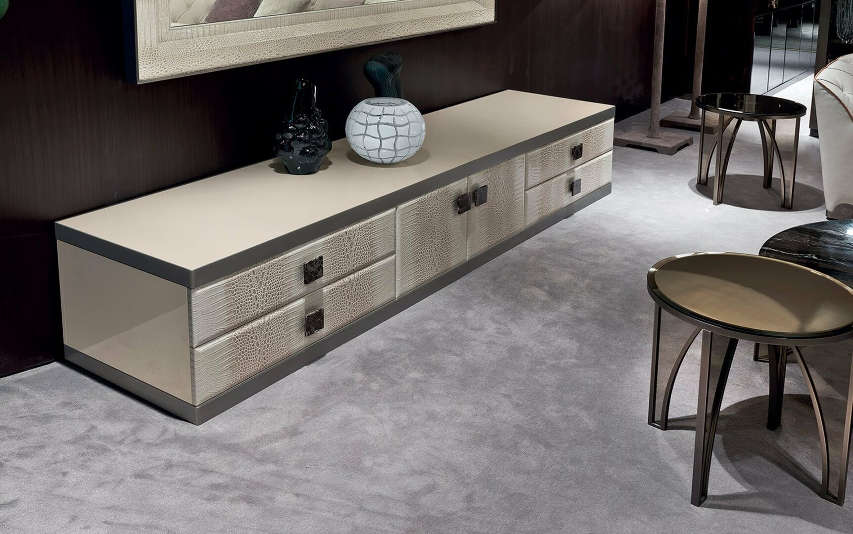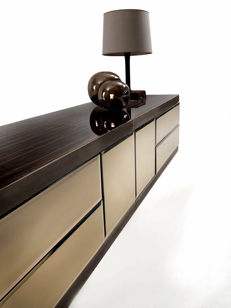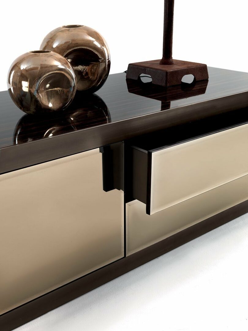Комод ASPEN от знаменитой итальянской фабрики LONGHI — это идеальное решение для вашей дневной зоны. Изготавливается из высококачественных материалов, включая дерево и мрамор, с возможностью выбора отделки: от элегантной кожи до стильного зеркала. Вы можете настроить внешний вид комода, выбрав один из нескольких вариантов отделки и цветовых решений, включая благородные оттенки эбенового дерева и ореха Canaletto.