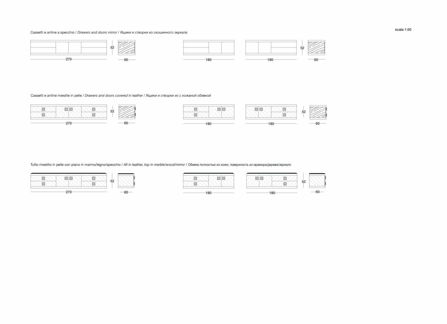 Комод оснащен ручками из мрамора и продуманной системой открывания «тяни-толкай», что делает его использование не только удобным, но и эстетически привлекательным. Каждый элемент этого комода был тщательно продуман для того, чтобы создать гармонию между формой и функцией.