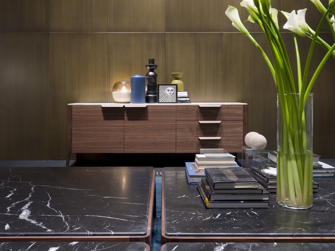 Изготовленный из высококачественного орехового дерева каналетта, комод выделяется своей элегантной мраморной столешницей.