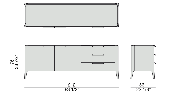 Он оснащен двумя дверцами и тремя ящиками с механизмом медленного закрывания, что обеспечивает удобство в использовании. Внутренние полки выполнены из дымчатого стекла, добавляя изысканности и современности.