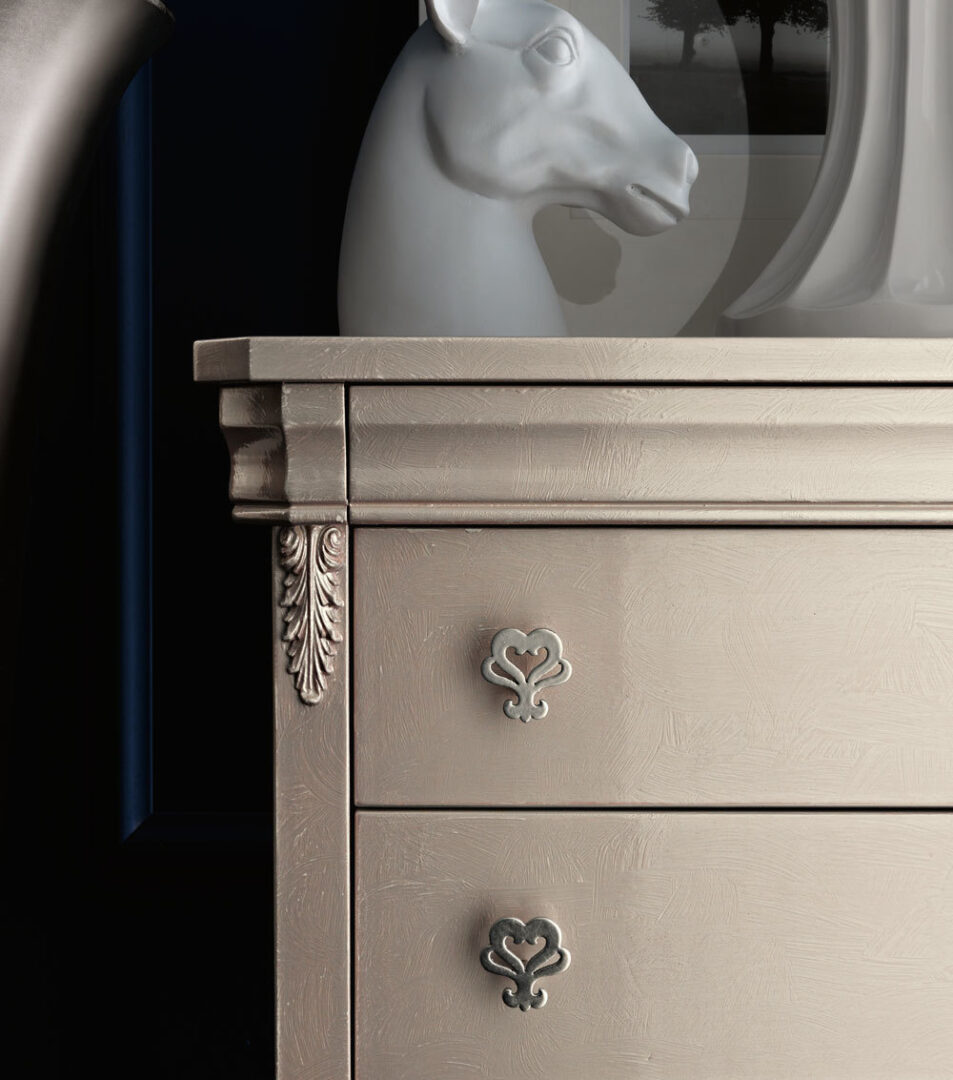 Производство на фабрике CORTEZARI – это синтез ручного труда и инновационных технологий. Каждый этап изготовления контролируется мастерами, а финальная проверка гарантирует отсутствие даже малейших дефектов. Комод CLARA – это не просто мебель, а инвестиция в вечную красоту.