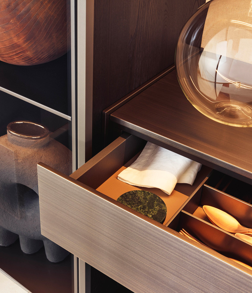 Фабрика Poliform использует только материалы премиум-класса, отобранные за их благородство и долговечность. Комод Code предлагает: