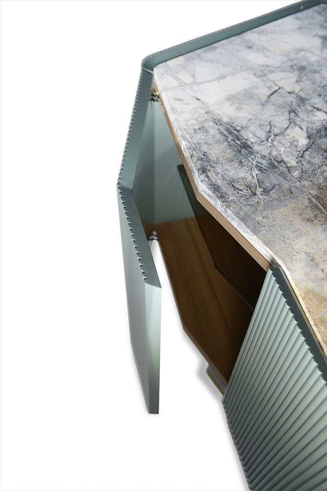 Представляем комод Diamond — шедевр итальянского дизайна, который станет изысканным акцентом любой гостиной. Его уникальная форма оснований в виде двойной буквы «L» и ребристые двери создают гармоничное сочетание стиля и функциональности.