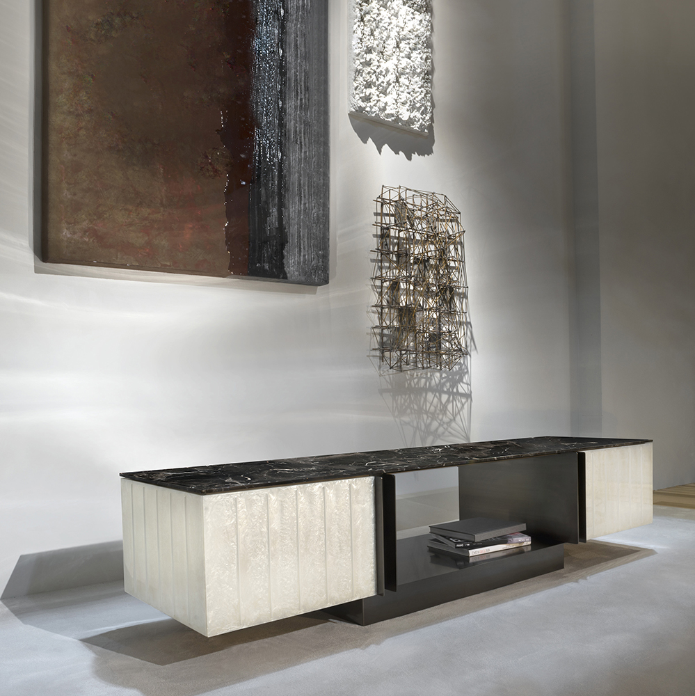 Откройте для себя комод Domino, созданный итальянской фабрикой Hessentia. Это сочетание простоты и элегантности, выполненное из мрамора, металла и художественной отделки, станет изысканным акцентом в вашем интерьере.