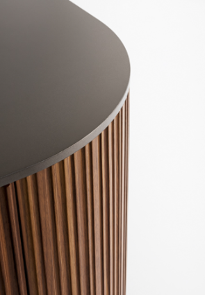 Комод доступен в двух цветовых вариантах: бронзовое лакированное дерево с дверцами из грецкого ореха Canaletto или свинцовое дерево с дверцами из древесного дуба. Этот элемент идеален как для частного дома, так и для офисного пространства, благодаря своему строгому, но стильному характеру.