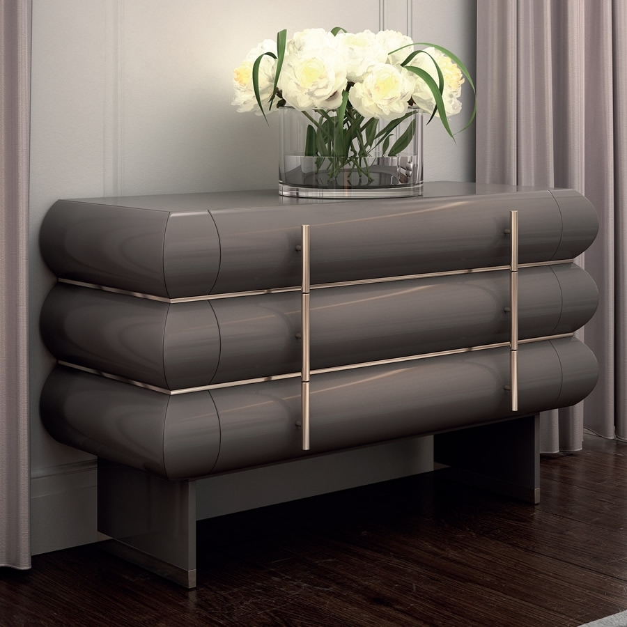 Комод EMPIRE выделяется своим изысканным дизайном, который сочетает в себе классические и современные элементы. Его лаконичные линии и плавные формы создают гармонию в любом пространстве. Представьте, как он эффектно смотрится в просторной гостиной, обрамленный роскошными текстурами и теплым освещением. Этот комод легко впишется в интерьер в стиле ар-деко, классическом или даже минималистичном.