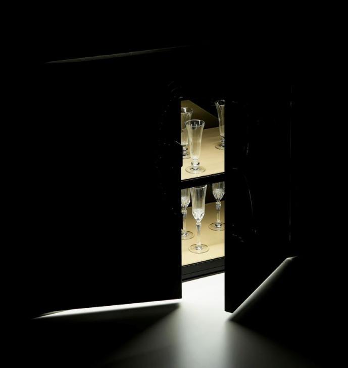 Комод FLUXUS изготавливается из высококачественных материалов, что гарантирует его долговечность и надежность. Его глянцевое лакированное покрытие создает эффектный блеск, а использование мрамора или пеностекла на верхней поверхности придает изделию роскошный вид. Лакированный интерьер с дымчатой зеркальной спинкой визуально расширяет пространство, а встроенное светодиодное освещение с датчиком открытия создает атмосферу уюта.