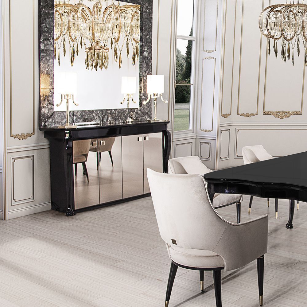 Комод GALEAZZO от итальянской фабрики FORMITALIA – воплощение элегантности и функциональности. Столешница из лакированного дерева с черной глянцевой отделкой придает модели современный шик, а зеркальные двери визуально расширяют пространство. Размеры 200×60×110 см оптимальны для хранения вещей без ущерба для площади комнаты.