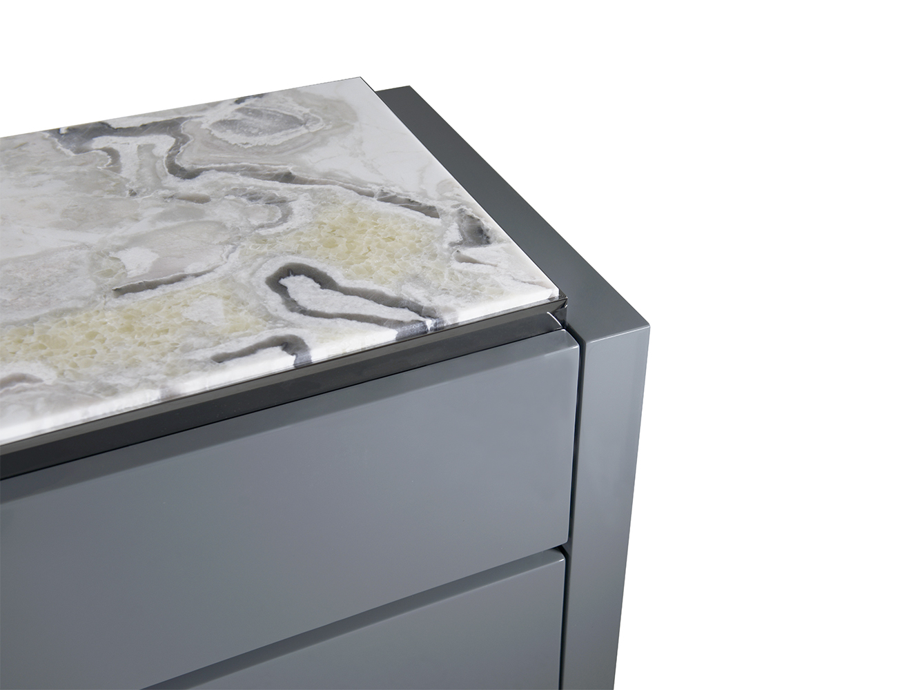 Комод Grant выделяется своим уникальным дизайном, который сочетает в себе современные тренды и традиционные итальянские элементы. Сложный процесс лакирования, известный как “Crackle”, придает поверхности комода эффектную текстуру, создавая визуальный интерес и подчеркивая его декоративность. Крестообразная металлическая основа добавляет изделию элегантности, делая его идеальным акцентом в интерьере.