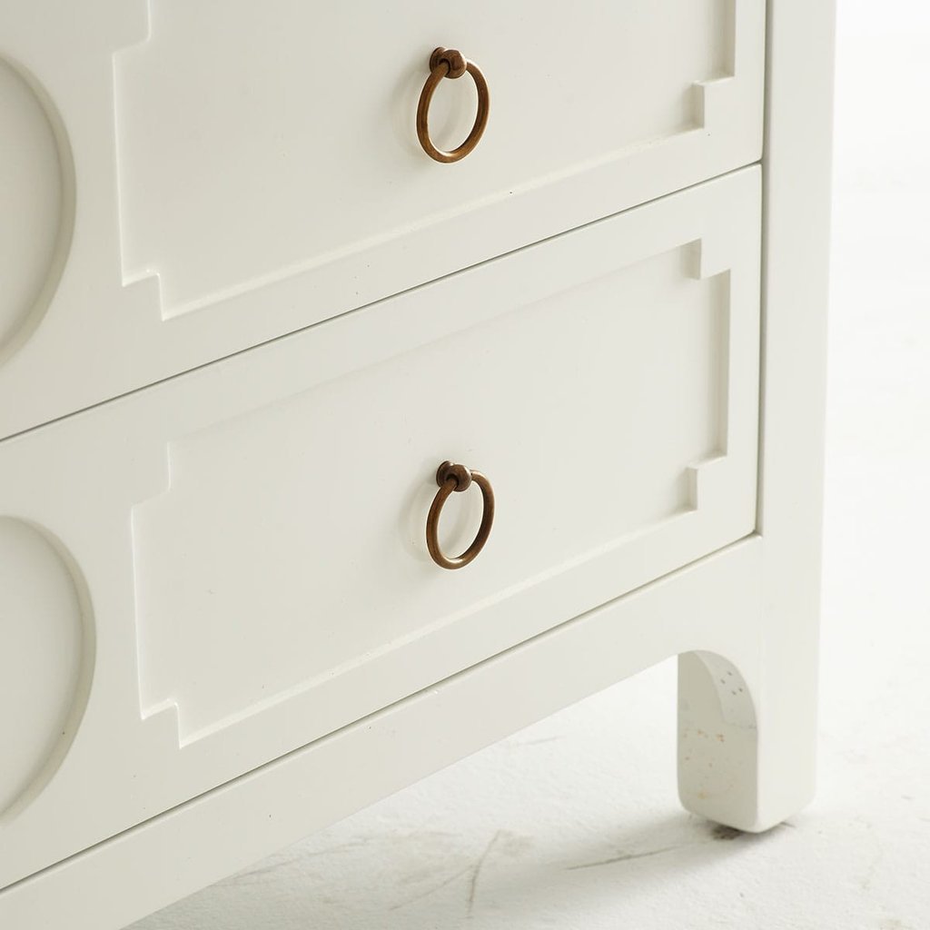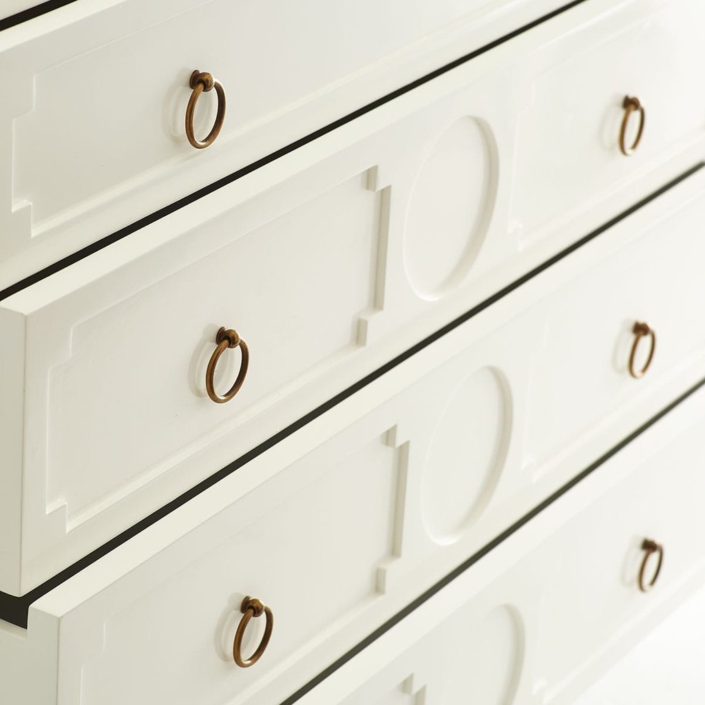 Комод GUSTAV WHITE от фабрики LOUVREHOME (Китай) – элегантное решение для хранения в спальне. Четыре вместительных ящика с латунными вытяжными кольцами сочетают функциональность и стиль. Изготовлен из дерева и МДФ, окрашен в классический белый цвет.