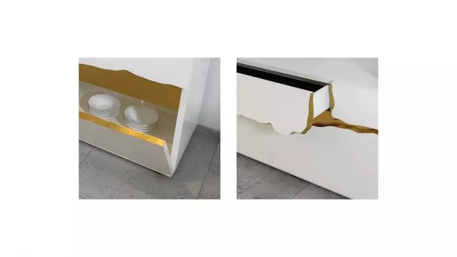 Комод IMPACT LOW от итальянской фабрики REFLEXANGELO — элегантное решение для современного интерьера. Выполнен из глянцевого лакированного массива в оттенках молока или белой древесины. Модель оснащена двумя просторными ящиками и складной дверцей с декоративным профилированием, покрытым золотом или латунью. Итальянское качество и внимание к деталям делают этот комод стильным и функциональным элементом мебели.