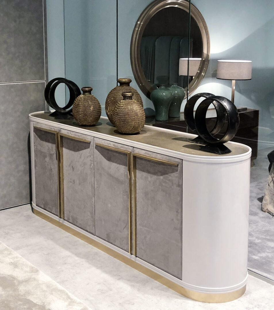Комод JAZZ LUX SOFT от итальянской фабрики CORTEZARI – воплощение элегантности и безупречного стиля. Коллекция отличается лаконичными, но выразительными линиями, дополненными драгоценными материалами. Металлические ручки sleek и кожаные вставки на дверцах создают гармоничный баланс между традиционными ценностями и современными технологиями производства.