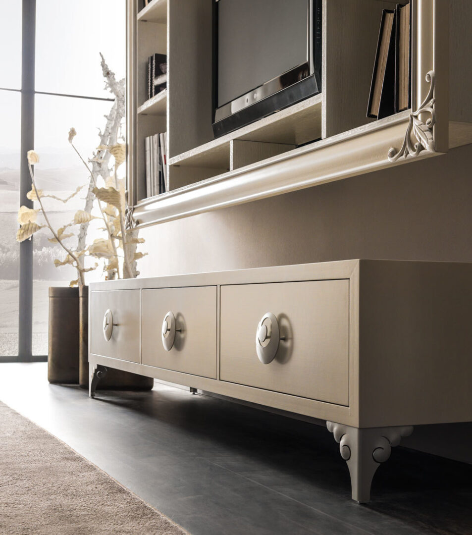 Каждый комод создается мастерами фабрики CORTEZARI вручную, с соблюдением многовековых традиций итальянского мебельного искусства. Отбор древесины, шлифовка, покраска и сборка — все этапы контролируются лично дизайнерами и технологами. Это гарантирует безупречное качество и эксклюзивность каждого изделия.