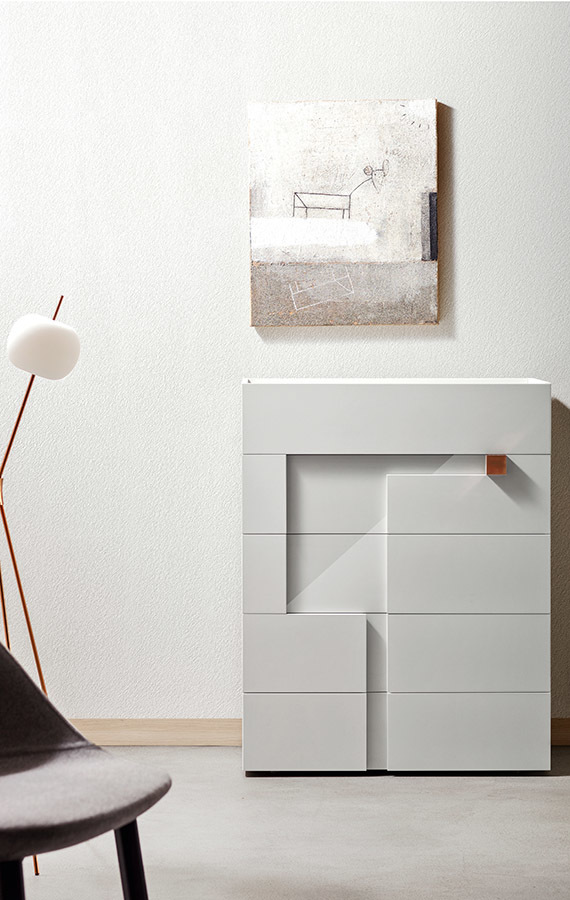Линейка Logos воплощает современную интерпретацию классики: лаконичные линии, продуманные пропорции и отсутствие избыточного декора. Комод отличается: