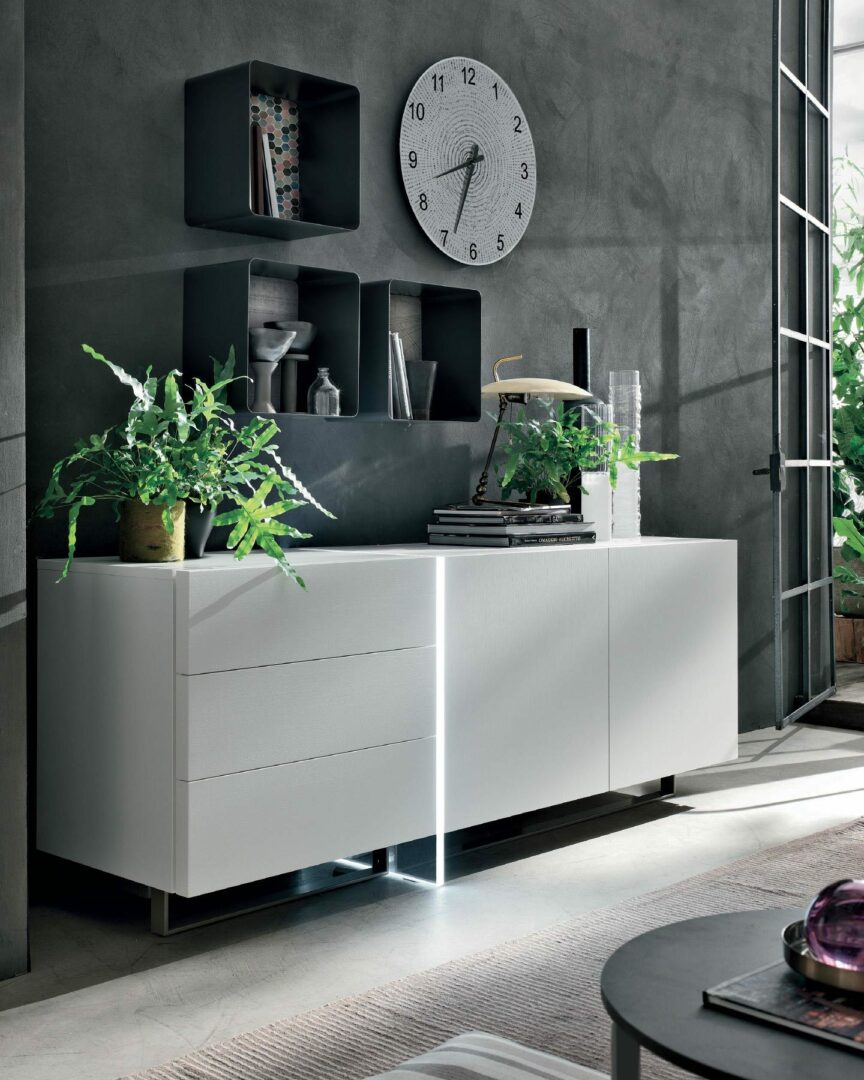 Комод MADISON выделяется уникальной светодиодной подсветкой, способной менять цвет на пурпурный, голубой или зеленый. Это позволяет создать атмосферу уюта и стиля, дополняя ваш интерьер индивидуальными акцентами.