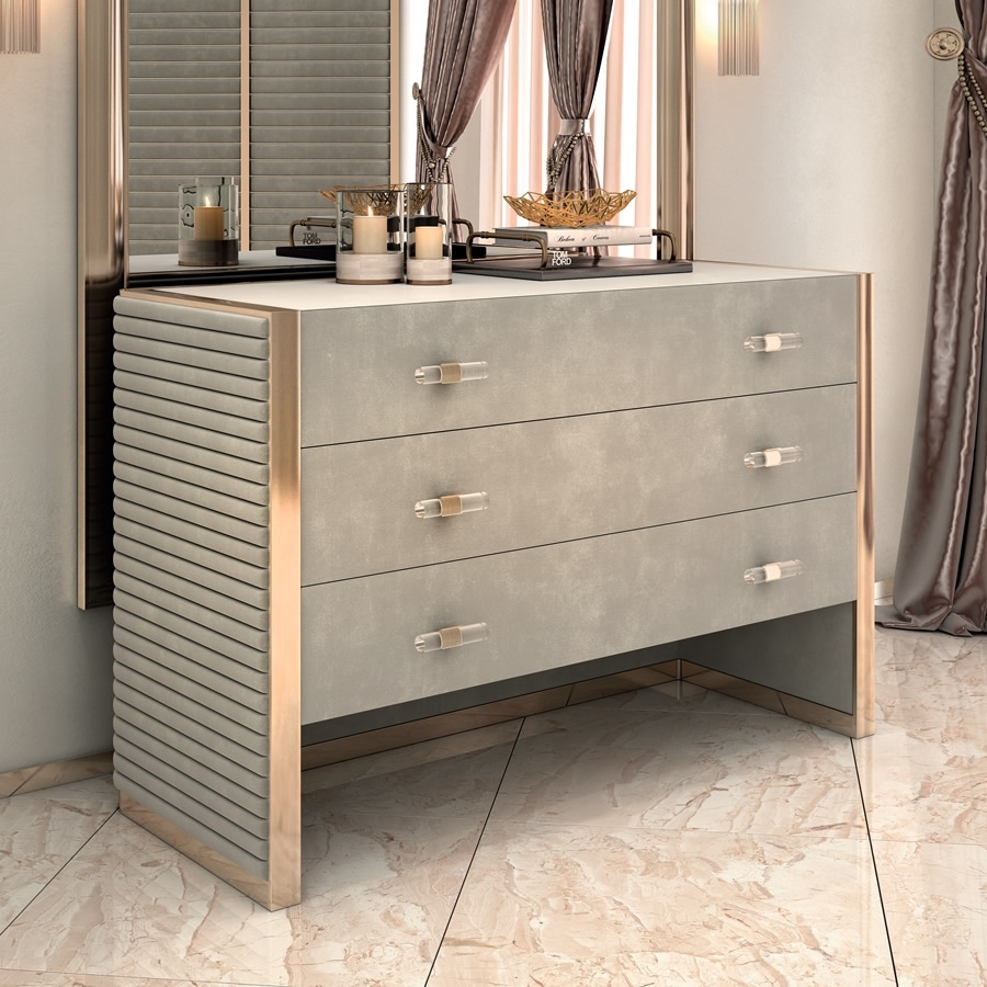 Комод Majestic сочетает в себе элегантные линии и утонченный стиль. Его деревянный каркас, обтянутый высококачественной кожей или тканью, создает атмосферу роскоши и комфорта. Металлические вставки, выполненные в цветах, таких как латунь, матовый никель и хром, добавляют современный акцент, подчеркивая уникальность и индивидуальность этого изделия. Каждая деталь продумана до мелочей, что делает его настоящим произведением дизайнерского искусства.