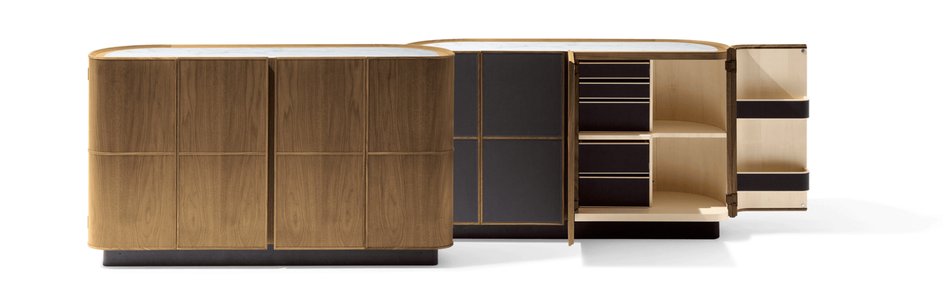 Комод выполнен из высококачественных материалов. Корпус с кленовой структурой придает ему уникальный внешний вид, а возможность выбора внешней отделки из грецкого ореха Canaletto или обивки кожей делает каждую модель поистине индивидуальной. Ручная работа мастеров GIORGETTI гарантирует, что каждый элемент комода выполнен с предельной точностью и вниманием к деталям.