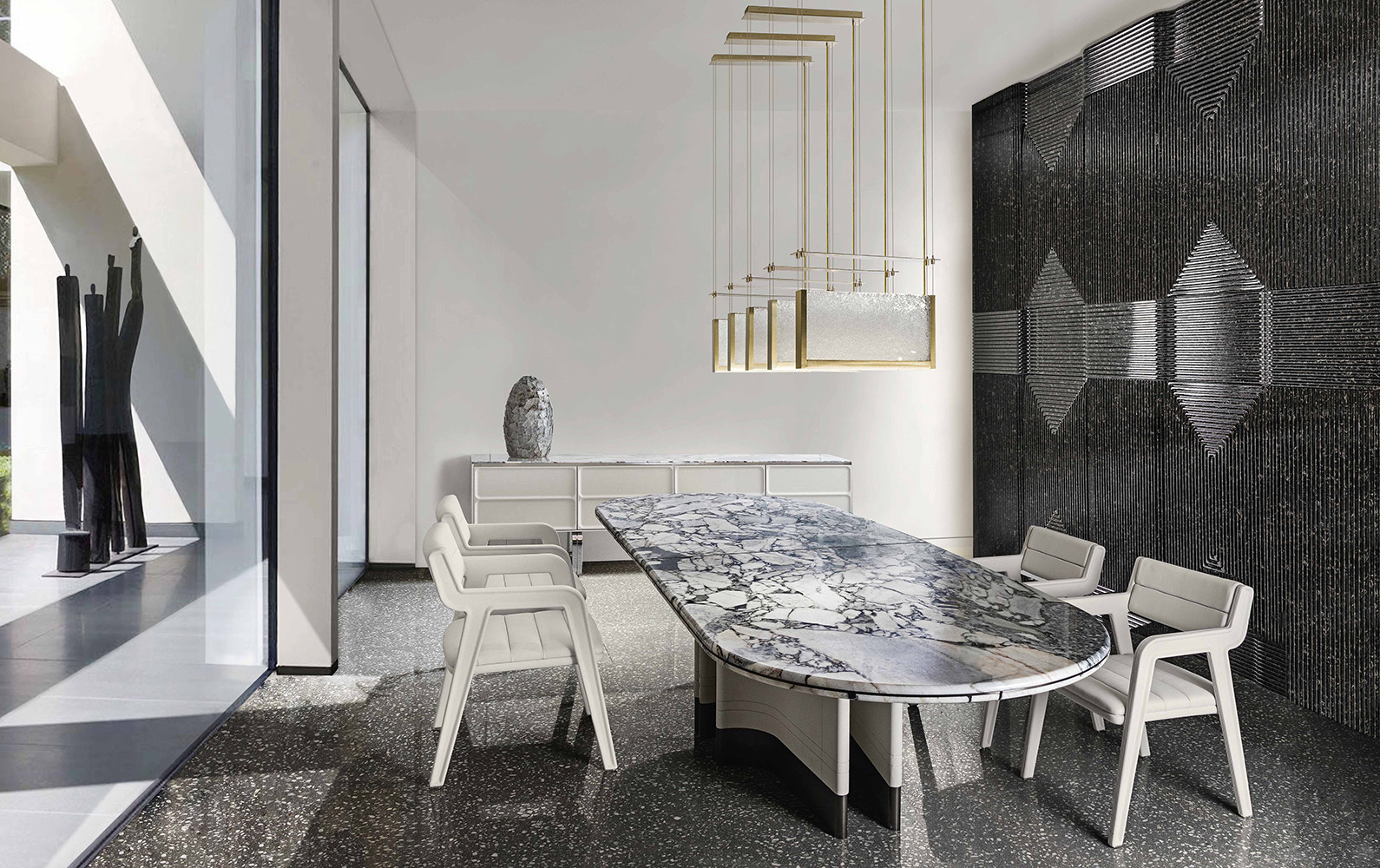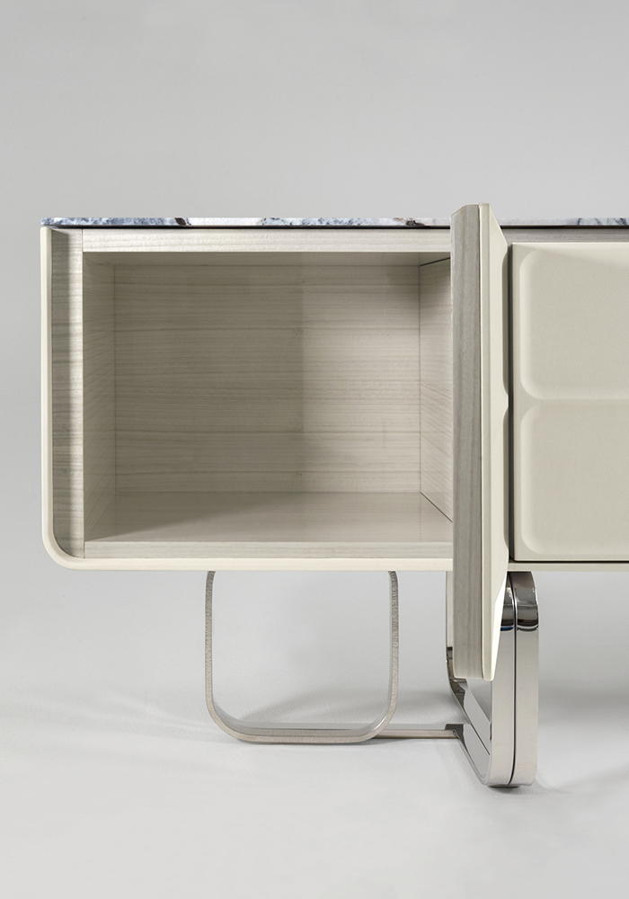 Комод Nova выделяется своим округлым дизайном, который гармонично вписывается в любой современный интерьер. Тщательно проработанные створки с рельефным квадратным рисунком, обрамленные мягкой кожей, придают этому предмету мебели уникальный характер. Каждый элемент создан с любовью и вниманием к деталям, подчеркивая исключительность и индивидуальность вашего пространства.