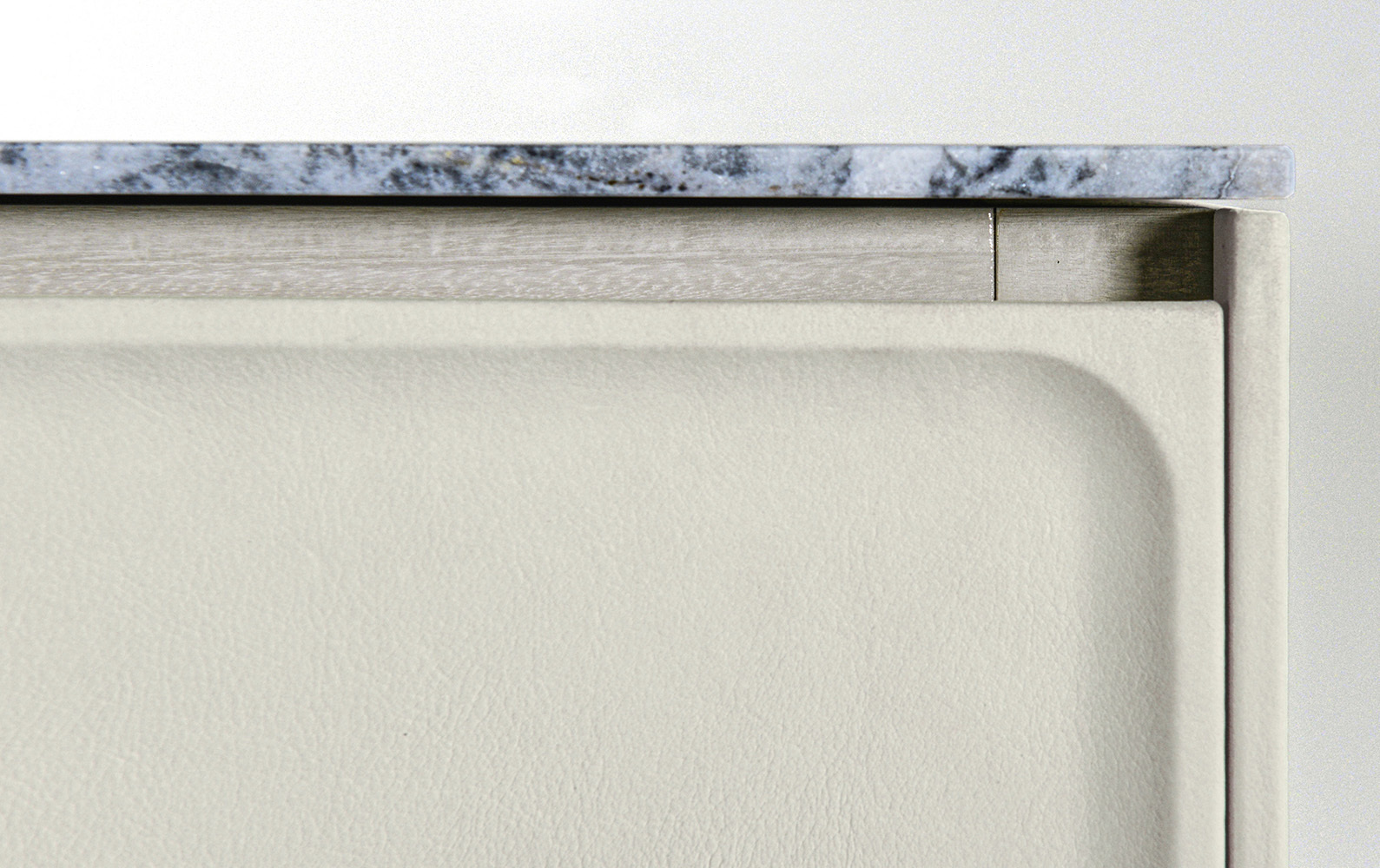 Дизайн и материалы: Комод Nova изготовлен из высококачественных материалов: кожи, металла и натурального мрамора. Тщательно проработанные створки с рельефным квадратным рисунком и столешница из мрамора создают уникальный стиль. Внутренняя часть выполнена из эвкалиптового дерева для долговечности.