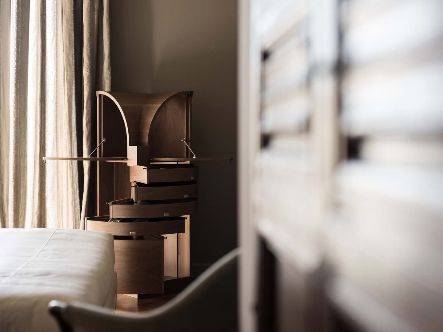 Представляем вашему вниманию комод NYN от GIORGETTI — истинный символ итальянского мастерства и элегантности. Этот угловой контейнер, выполненный из высококачественного клена или грецкого ореха Каналетто, оптимизирует пространство и добавляет роскоши в любой интерьер.