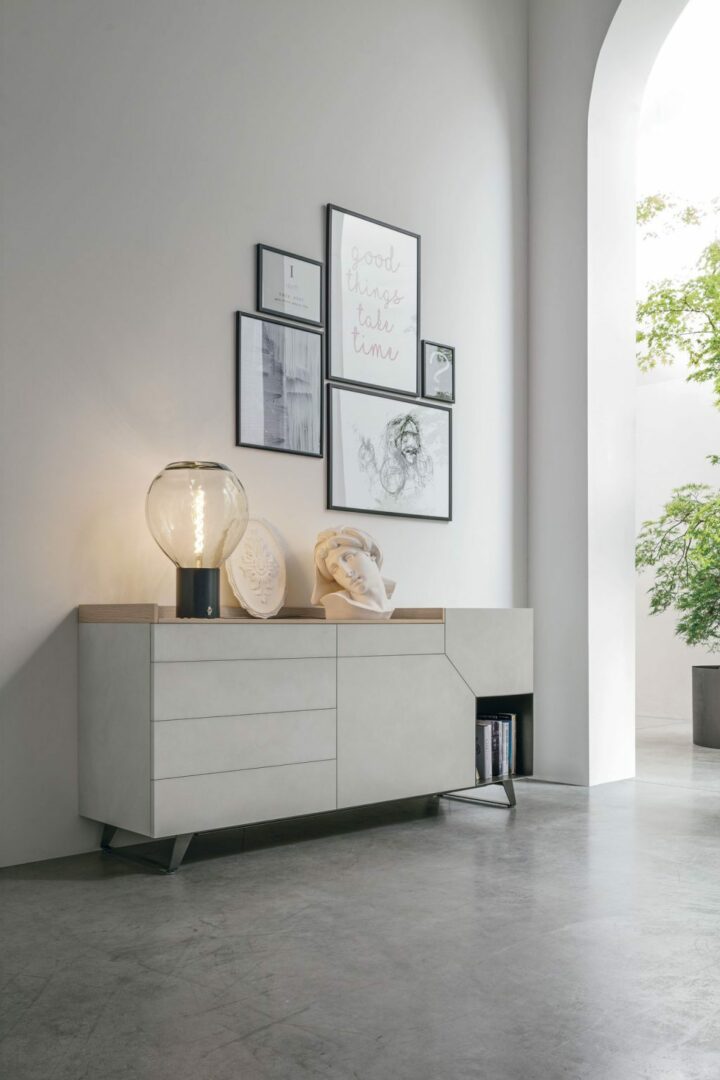 Комод Remix от итальянской фабрики Tomasella – оригинальное решение для современного интерьера. Открытый угол с наклонной дверцей и сочетание различных материалов создают уникальный дизайн, подчеркивающий индивидуальность пространства.