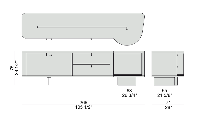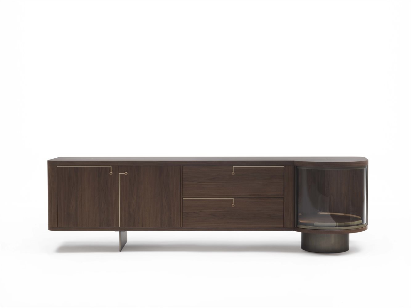 Комод Rondo’ 2 выполнен из благородного ореха каналетта, который в сочетании с инкрустацией из натурального клена создает выразительный и гармоничный образ. Каждая деталь продумана до мелочей: матовая бронзовая латунь в основании придает комоду роскошный вид, а плавные линии и формы делают его идеальным выбором для любого современного интерьера.