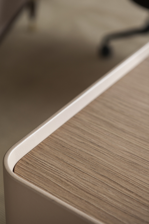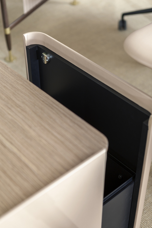 Каждый комод TRUST представлен с использованием различных видов обивки, включая Cuoio Saddle Executive в тонах Havana или Bourbon Ink, а также кожу Pelle Frau® из цветовой системы. Эти материалы не только красивы, но и приятны на ощупь, создавая атмосферу уюта и комфорта. Выдвижные ящики комода имеют один внешний отсек для документов и внутренний ящик, обтянутый кожей, что добавляет изысканности и стиля.