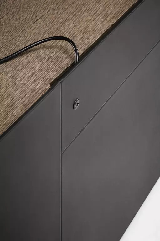Комод TRUST также предлагает современные технологии: двери открываются на 155°, оснащены механизмом плавного закрывания и замком для обеспечения безопасности. Уникальная функция прокладки кабелей позволяет аккуратно организовать пространство в соответствии с вашими потребностями, что делает его идеальным выбором для современных офисов и домашних интерьеров.