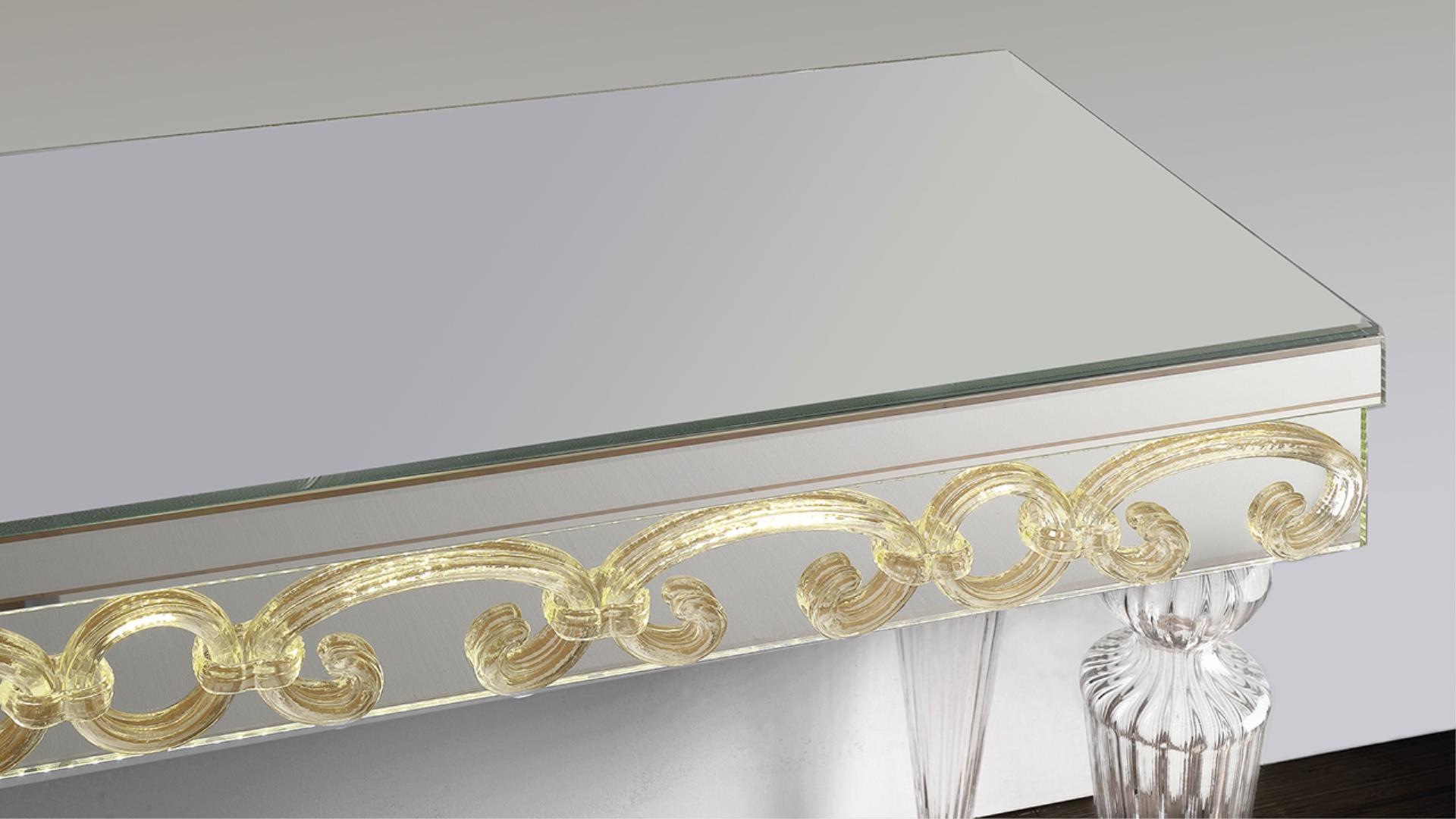 Консоль CASANOVA MOBILE от итальянской фабрики REFLEXANGELO – воплощение роскоши и изысканного дизайна. Деревянная основа сочетается с экстра-ясным зеркальным или окрашенным стеклянным покрытием, создавая эффектный контраст. Украшена прозрачными, золотыми или цветными стеклянными элементами Murano, подчеркивающими мастерство итальянских мастеров. Идеальный выбор для тех, кто ценит элегантность и премиальное качество.