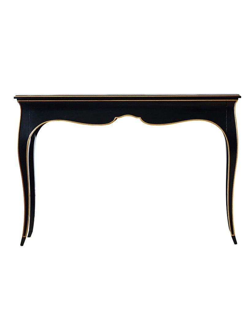 Консоль DRESDEN GOLD от фабрики LOUVREHOME (Китай) – элегантное решение для классических интерьеров. Черная прямоугольная столешница с золотым кантом дополнена изящными изогнутыми ножками, украшенными золотым декором. Изготовлена из дерева, размеры – 120×30×80 см. Идеально подходит для создания роскошного акцента в гостиной или прихожей.