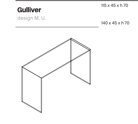Консоль GULLIVER от итальянской фабрики TONELLI – это элегантное решение для современного интерьера. Простая и линейная мостовая структура легко впишется в любое пространство. Доступна в различных размерах, что позволяет адаптировать её под разные нужды.