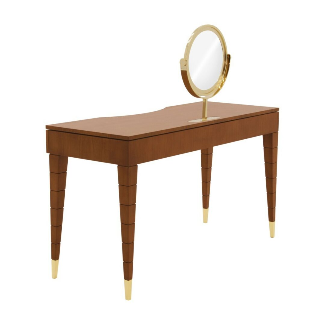 Каждый элемент этого туалетного столика выполнен вручную с использованием только самых благородных материалов. Настоящее вишневое дерево, использованное в отделке, не только радует глаз своими теплыми оттенками, но и обеспечит долговечность и надежность на долгие годы. Выбор различных вариантов отделки позволяет вам персонализировать столик, подбирая его под существующий интерьер.