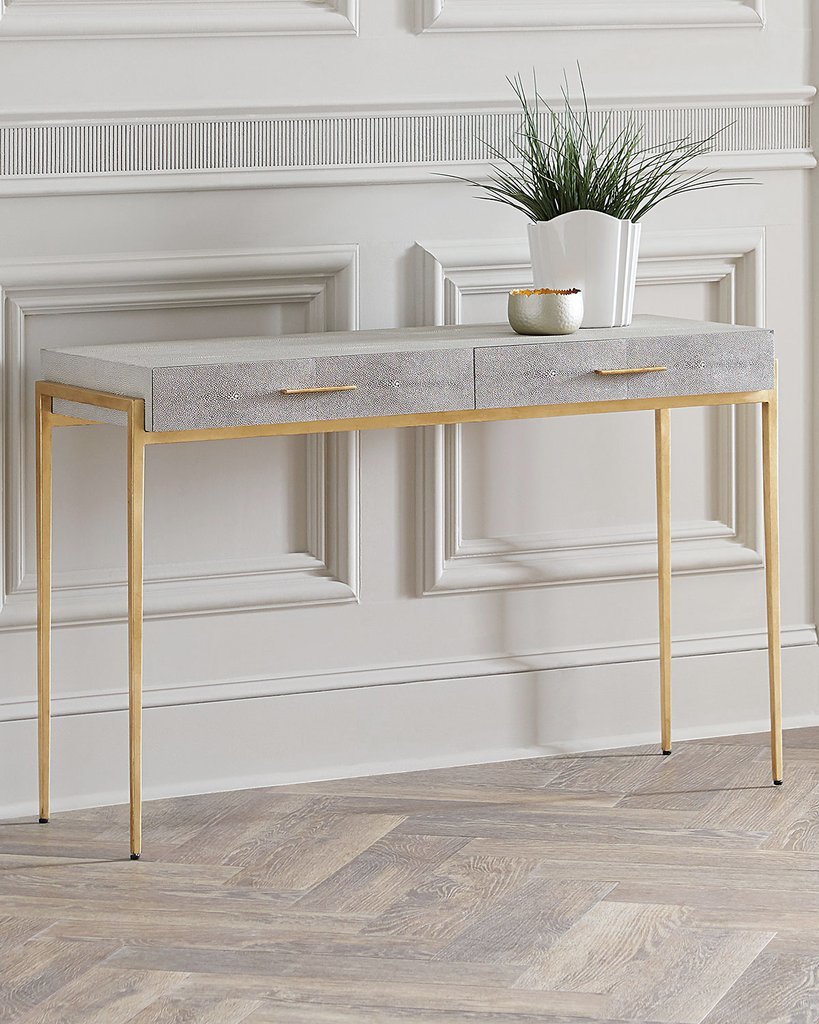 Материалы: шагреневая кожа, МДФ, металл. Размеры: 122×42,5×76,5 см. Идеально подходит для использования в качестве письменного стола или консоли в гостиной. Доступна под заказ. Для уточнения деталей обращайтесь по телефону +7 (495) 369-17-36.