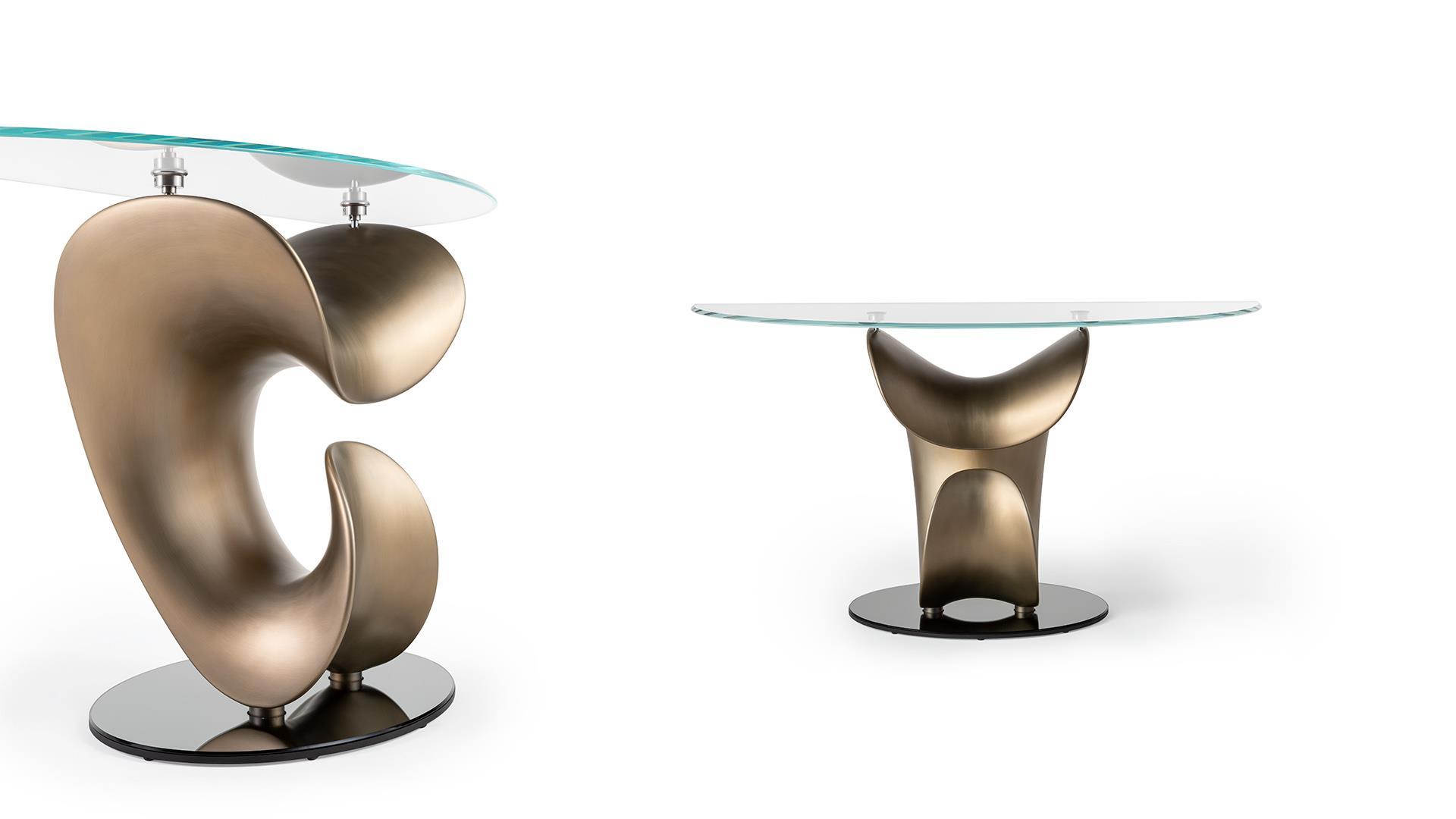 Консоль PARENTESIS от итальянской фабрики REFLEXANGELO – элегантное решение для современного интерьера. Модель представлена в нескольких вариантах отделки: латунь, темная латунь, титан и титановый темный, что позволяет подобрать идеальное сочетание с любым стилем. Атласная база придает изделию утонченность и благородство.