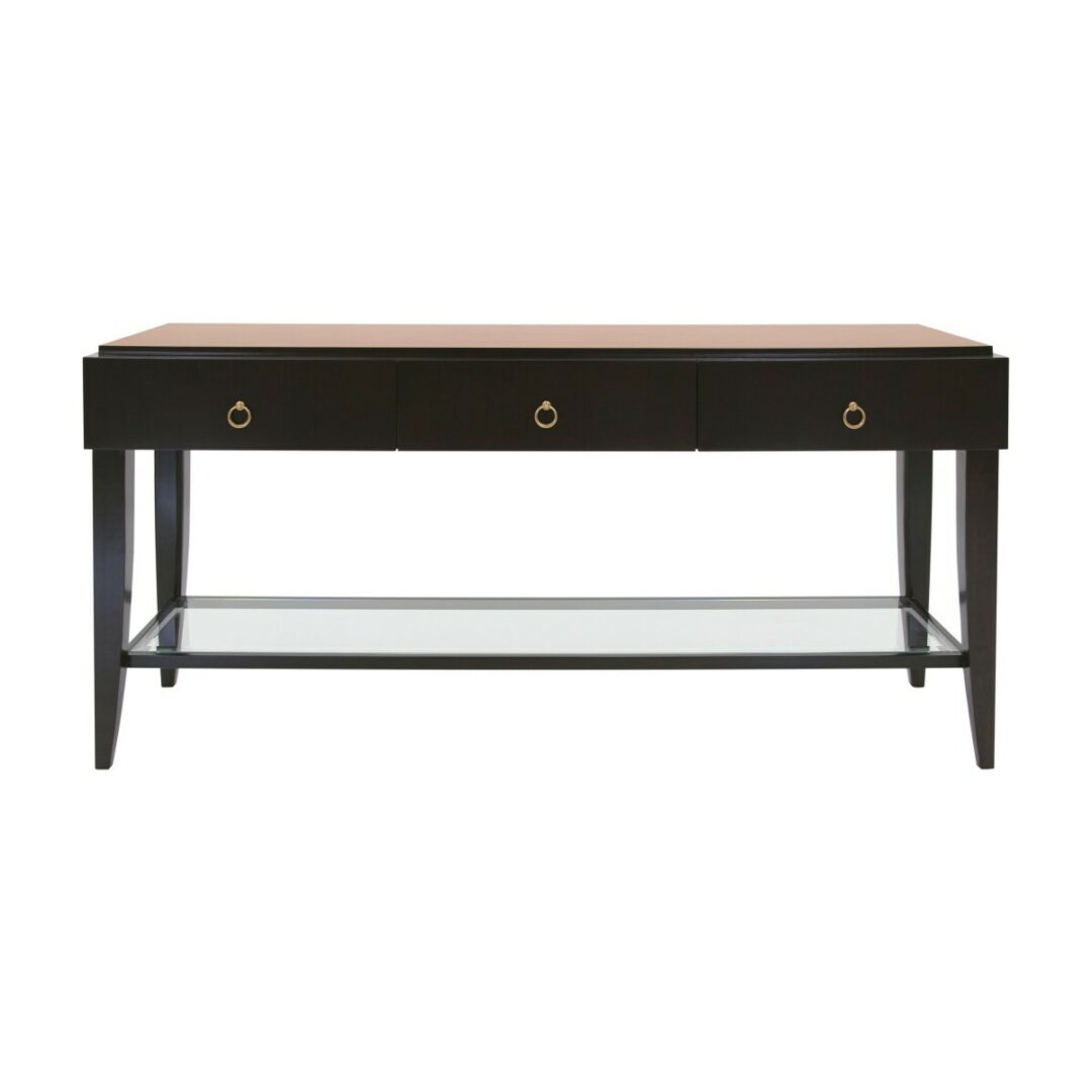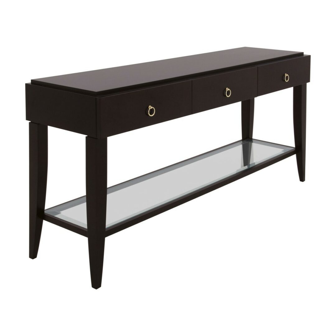 Эта консоль оснащена тремя вместительными ящиками, которые предоставляют достаточно места для хранения мелочей, а стеклянная полка может использоваться как стильная поверхность для журналов и книг. Габариты консоли: высота 78 см, ширина 164 см, глубина 44 см, что позволяет ей удобно вписаться в любое пространство, добавляя ему утонченности и комфорта.