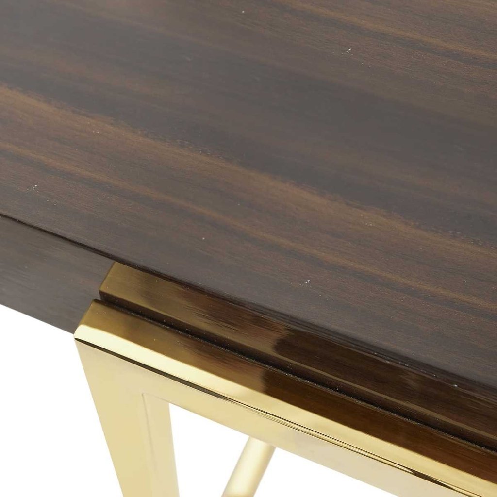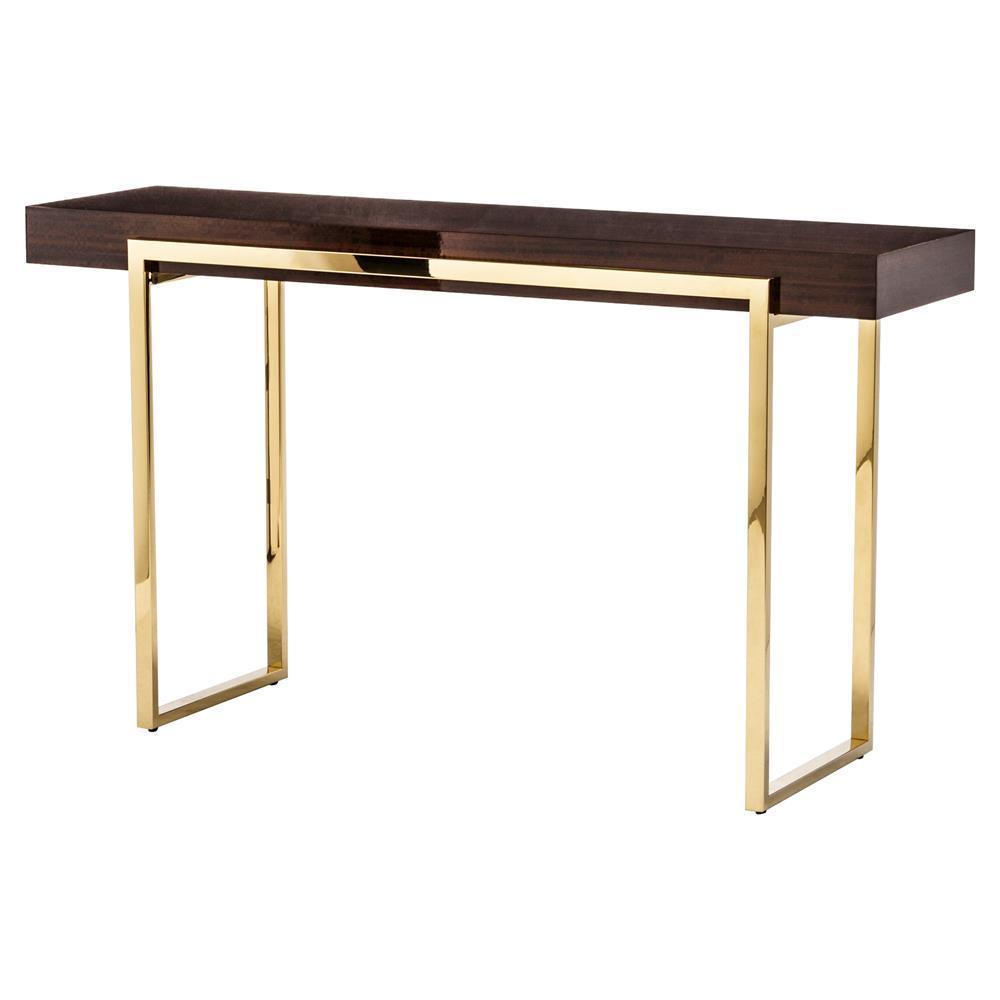 Консоль TRAFALGAR от фабрики LOUVREHOME (Китай) — элегантное решение для современного интерьера. Модель сочетает минималистичный дизайн с благородными материалами: столешница из экологичного шпона эвкалипта и золотистые стальные ножки. Размеры (140×75×40 см) делают её универсальной для прихожих, гостиных или офисов.