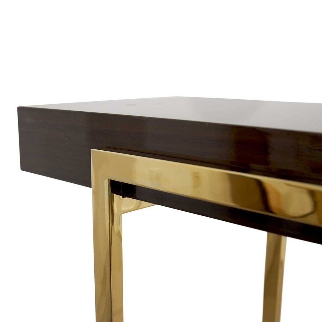 Представьте, как эта консоль преображает пространство: в прихожей она становится стильной витриной для декоративных аксессуаров, в гостиной — основой для изысканной композиции с зеркалом и светильниками, а в кабинете — элегантным рабочим столом. Ее универсальность позволяет адаптироваться к любому стилю — от ар-деко до минимализма.