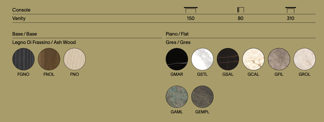 Каждая деталь консоли Vanity создается вручную опытными мастерами фабрики NOVAMOBILI. Итальянские традиции мебельного производства сочетаются с передовыми технологиями обработки материалов, что позволяет добиться идеальной геометрии и безупречной отделки. Особое внимание уделяется экологичности — используются только безопасные лаки и краски.