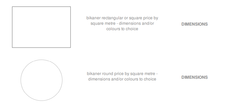 Доступен в различных размерах: от 100×100 см (квадратные модели), 100×120 см (прямоугольные) или от 100 см в диаметре (круглые). Допускается отклонение в размерах до ±3% – особенность ручного производства.