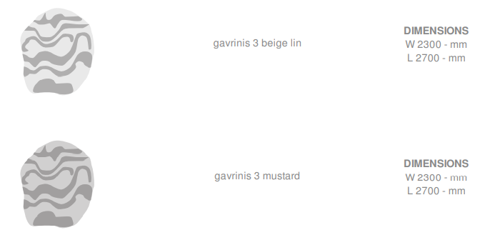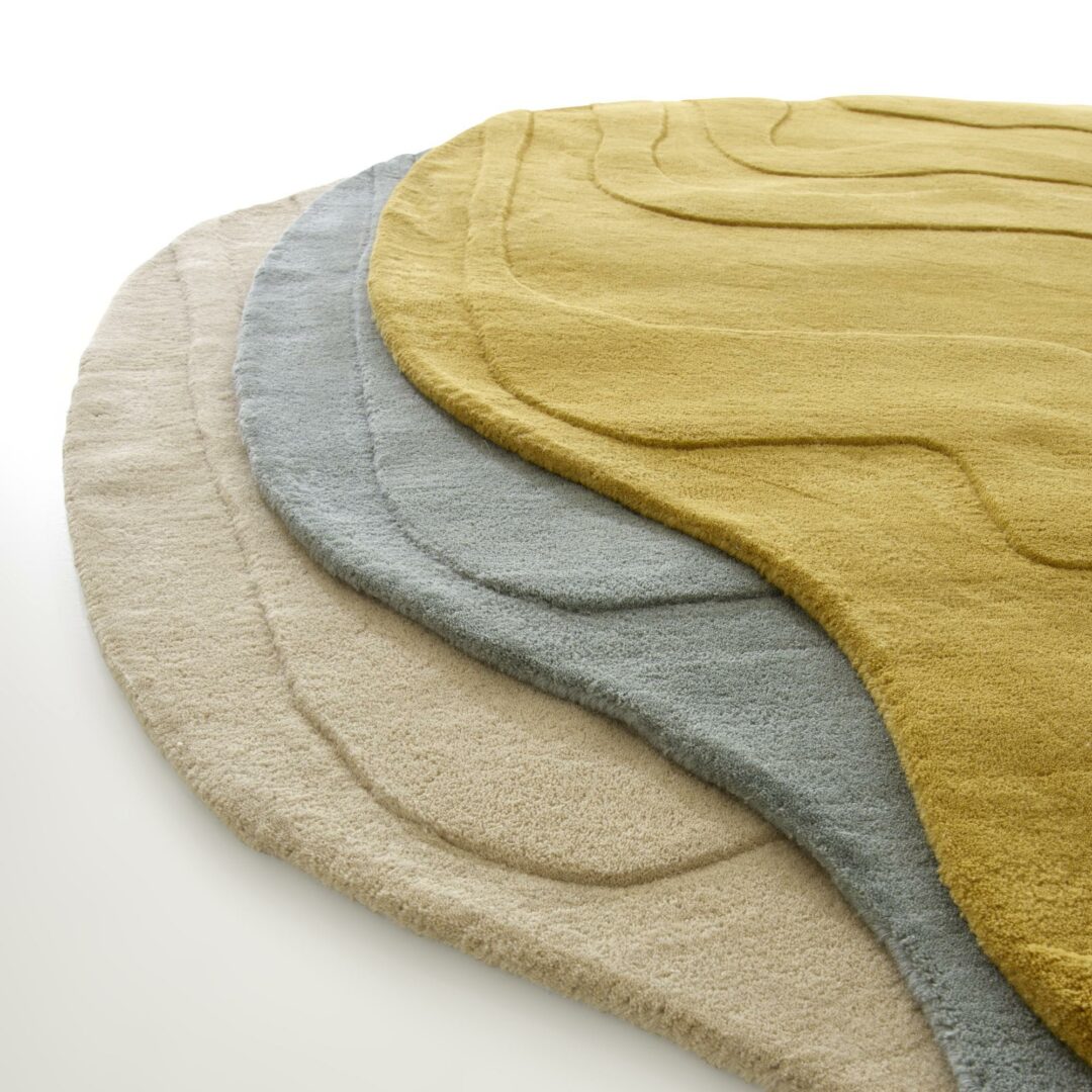 Ковер GAVRINIS 3 от французской фабрики Ligne Roset – это эксклюзивный дизайн, вдохновленный эскизами Пьера Полина. Форма неправильной гальки с топографическими линиями создает эффект объемного рельефа благодаря тонкой скульптуре шерстяных пучков разной высоты (10-11 мм и 14-15 мм).