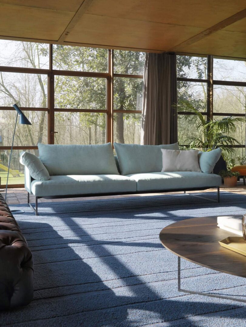 Ковер HANEDA отличается сдержанной, но выразительной эстетикой, где каждая деталь продумана до мелочей. Его дизайн вдохновлен природными мотивами и классическими итальянскими традициями, что делает его универсальным дополнением как для современных, так и для классических интерьеров. Узор, выполненный в благородных оттенках, создает эффект глубины и объема, добавляя помещению динамики и стиля.