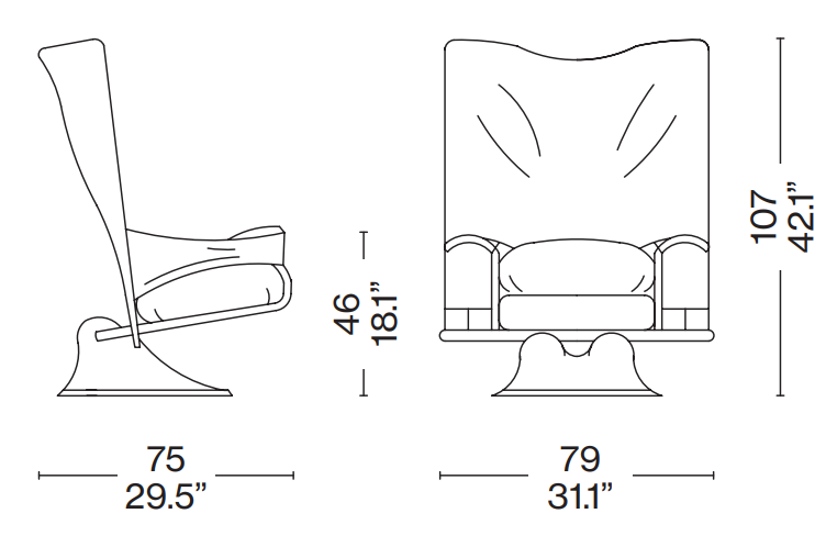 Доступно в различных вариантах обивки: кожа, ткань или их комбинации. Итальянское качество исполнения делает это кресло не просто предметом мебели, а арт-объектом для ценителей авангардного дизайна.
