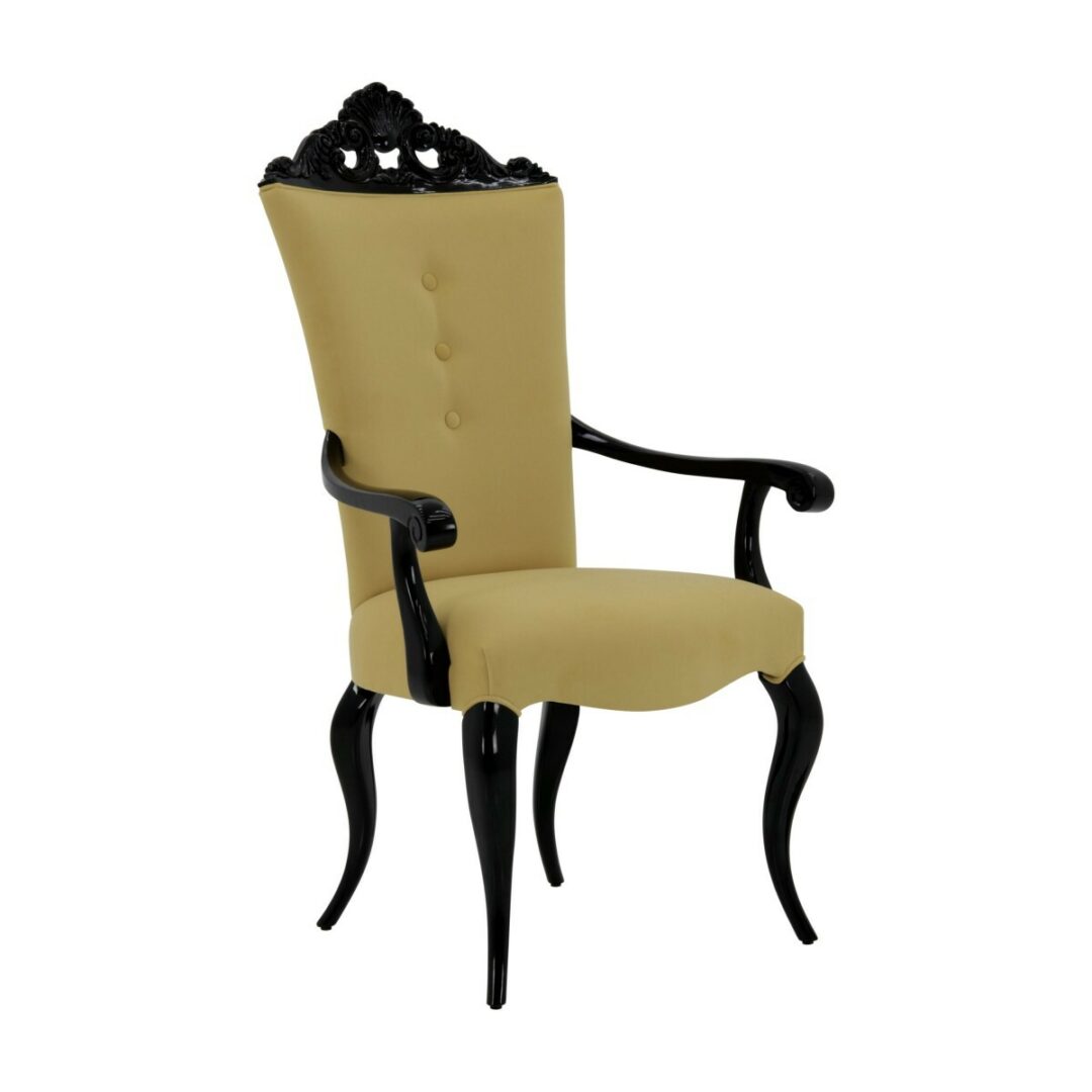 Кресло ANTESIA выполнено из прочного букового дерева, отличающегося долговечностью и устойчивостью к внешним воздействиям. Его великолепные извивающиеся линии и богато оформленный резной гребень привлекают внимание и создают атмосферу роскоши. Вы можете дополнить этот шедевр серебряным или сусальным лаком, подчеркивая его уникальность и статус.