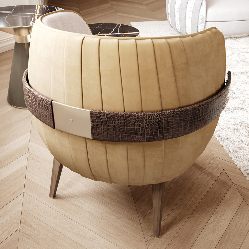 Кресло Audrey от итальянской фабрики Asnaghi — это элегантный элемент декора, который объединяет искусство и комфорт. Изготовленное вручную, кресло выделяется изящными линиями и высококачественными материалами: массивом дерева, текстилем и кожей плиссе. Его индивидуализируемый дизайн позволяет выбрать цвет и фактуру обивки, что делает каждое кресло уникальным.