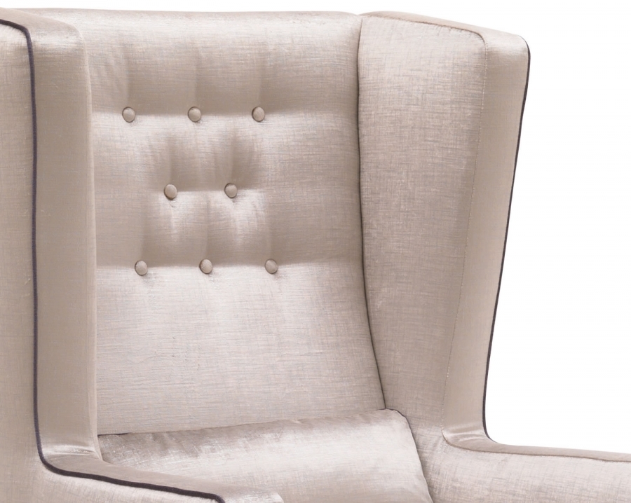 Кресло Aurora украшено изысканными деталями спинки, декорированными пуговицами, и контрастными профилями, придающими уникальный шарм. Оно станет центром притяжения в любом помещении.
