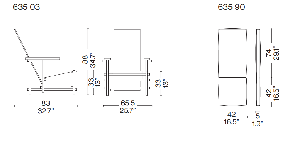 Кресло выполнено из дерева в фирменной черно-красно-синей гамме, ставшей символом дизайна De Stijl. Итальянское качество Cassina гарантирует долговечность и точность исполнения каждой детали. Идеально подходит для ценителей авангардного искусства и функционального дизайна.
