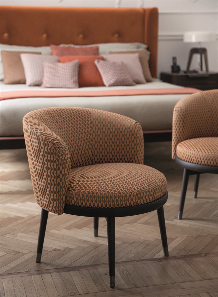 Кресло Daphne выделяется своей массивной структурой из ясеня, что придаёт ему не только прочность, но и элегантный вид. Этот элемент интерьера отлично впишется как в классические, так и в современные пространства, подчеркивая статусность вашего дома. Обивка, выполненная из тканей премиум-класса, позволяет легко интегрировать кресло в любой интерьер, создавая гармоничное сочетание стиля и комфорта.