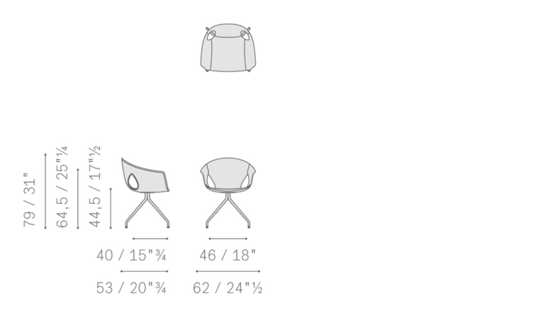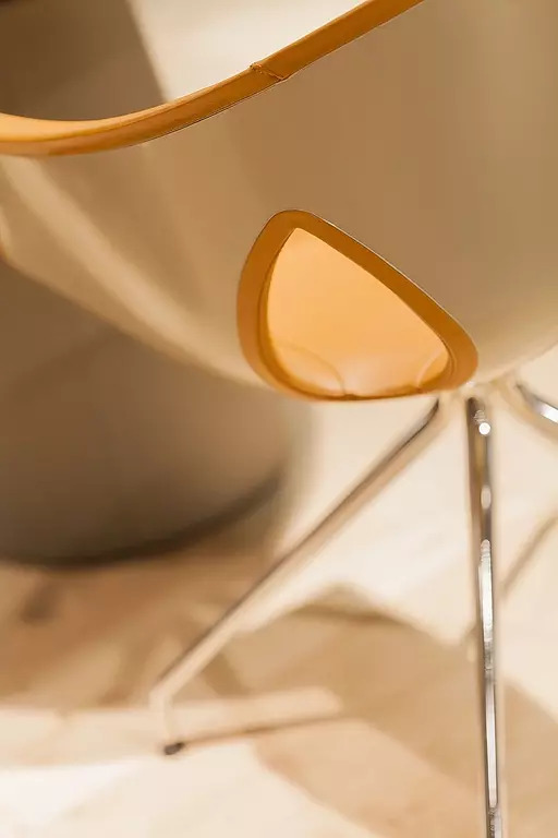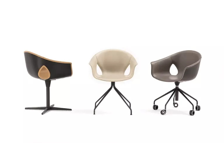 Корпус кресла выполнен из термопластичного композитного полимера и покрыт мягким пенополиуретаном. Доступны обивки из кожи Pelle Frau® и тканей Kvadrat, что позволяет создать уникальный стиль.