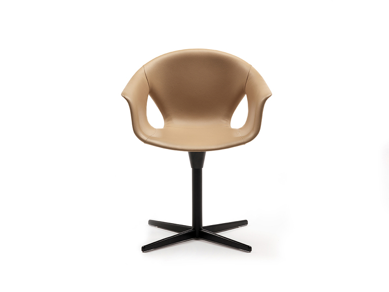 Корпус кресла изготовлен из формованного термопластичного композитного полимера, что обеспечивает его долговечность и прочность. Обивка доступна в различных вариантах:
