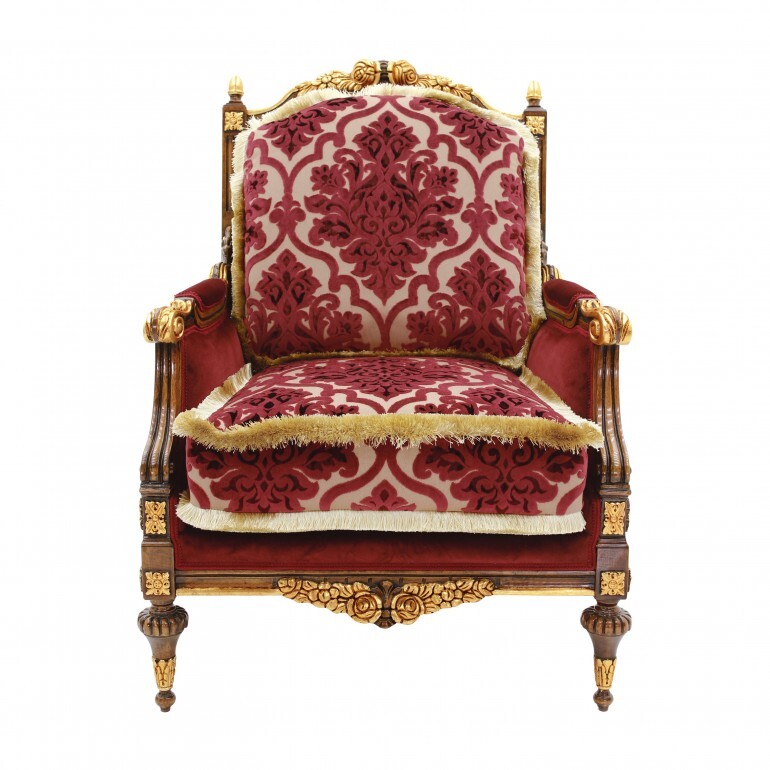 Каждая деталь кресла GIOVE продумана до мелочей. Его сложная резьба из букового дерева, способная быть покрыта лаком из сусального или серебряного листа, придает изделию статусный вид. Элегантные линии и изысканный силуэт делают кресло не только удобным, но и настоящим украшением вашего пространства. Обивка из мягкого, высококачественного материала в сочетании с подушками, оформленными бахромой, обеспечивает максимальный комфорт и стиль.